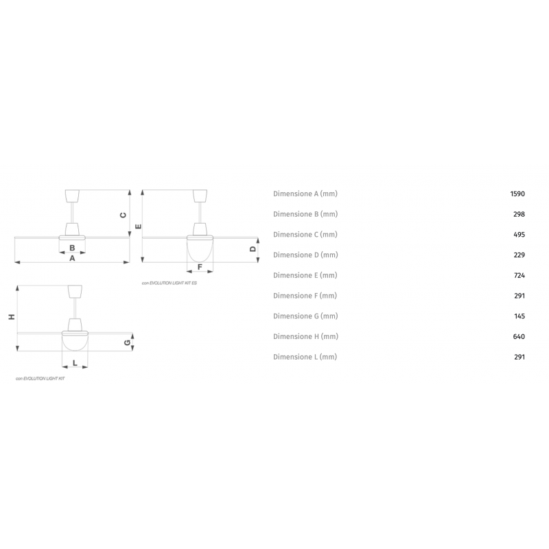 Sacchetto accessori contenente la bulloneria necessaria per il montaggio delle pale, il gancio e il gommino antivibrante per il fissaggio a soffitto