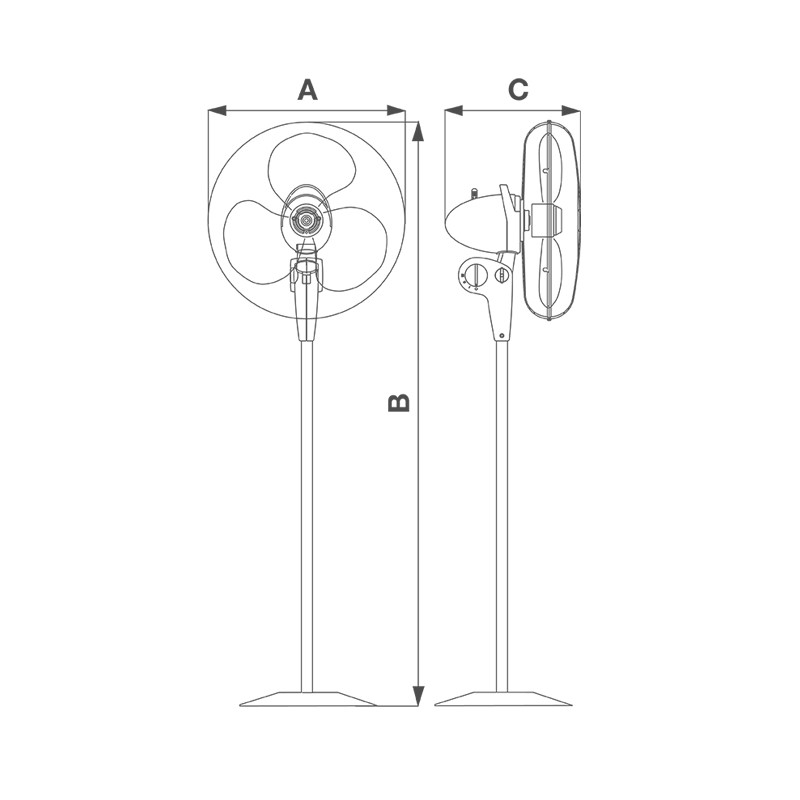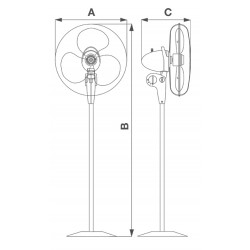 • Motore asincrono a 3 velocità con albero montato su bronzine autocentranti e autolubrificanti, equipaggiato di protettore termico e comprensivo di meccanismo di oscillazione con angolo massimo pari a 90°